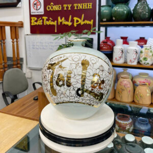 - Chất liệu: Sứ cao cấp Bát Tràng vẽ vàng kim 24K.