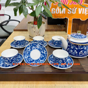 Bộ ấm chén men lam hoa dây cao cấp Bát Tràng